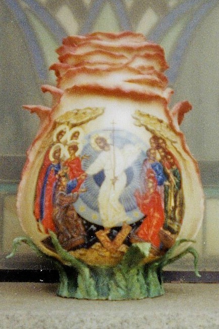 Rose-shaped Earthen Vessel with icon of the Resurrection- Fired Clay, 1999
